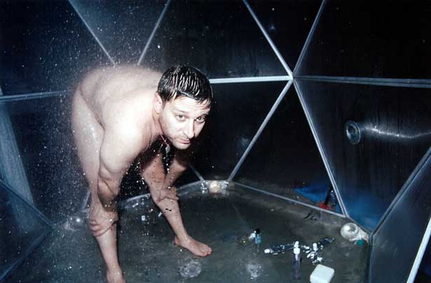 Towards the end of the Millennium, Harris focused on a new project: “Quiet: We Live in Public,” an experiment in communal living under constant, Big Brotherian surveillance. Participants resigned all their rights and subjected themselves to rigorous psychological inquisition, in order to spend time in the “Capsule Hotel,” an underground compound housing one-hundred compartmentalized bunks with televisions displaying any and all activities occurring in the neighboring spaces, the bar, dining hall, communal shower or even the fully-stocked armory/shooting range, and receive all the free food, alcohol and drugs they could ever want. The successive project explored constant surveillance even further with Harris placing his newly budding relationship on the Internet for all to comment on and see, fed by hundreds of active video cameras positioned all over his studio apartment. Timoner portrays both of Harris’ experimental forays as brilliant, optimistic attempts to reconcile humanities future in the digital age that eventually degrade into emotional and mental breakdowns for all those involved.