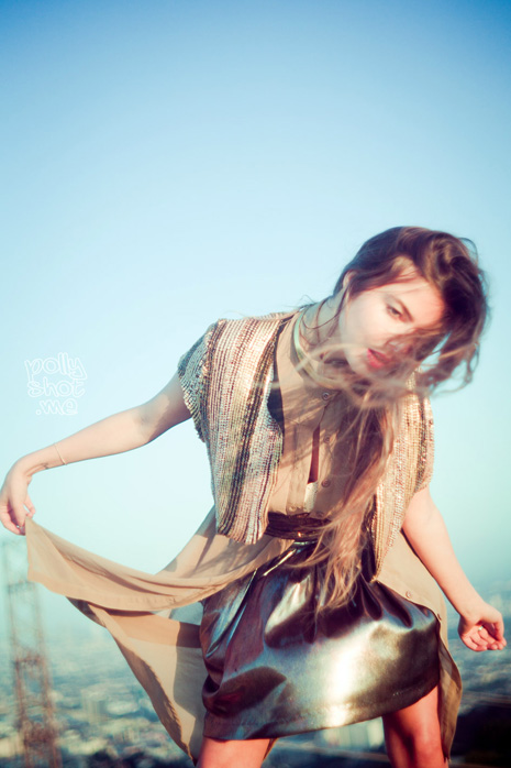 Above: Sheer Blouse Tunic, Love Melrose | Beaded Vest, Vintage | Gold Scarf (worn as belt), Love Melrose | Gold lamé skirt, Vintage | Choker Necklace, Vintage