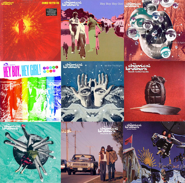 I always dug the early Chemical Brothers artwork, especially on their single EPs. They fit the music in conveying a frenzied BUT stoned out vibe. You could always sort of tell what drugs they took during the production of that music.