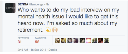 Benga retired from music earlier last year when he decided he wanted to focus on starting a family. Little did the public know, he was dealing with psychological issues as well.
