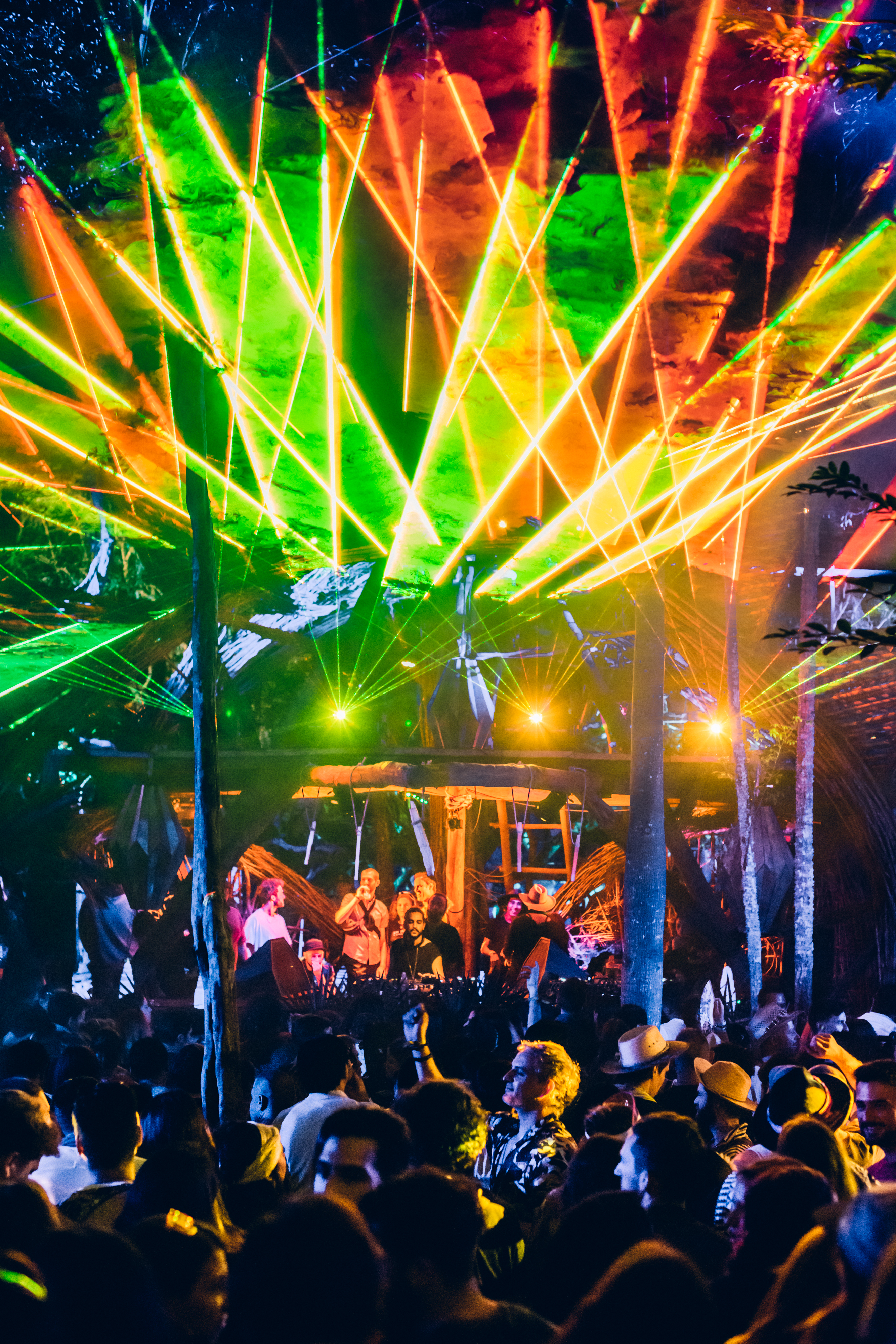 There is nothing as surreal as watching the myriad of lasers glow through the jungle’s canopy as you dance in an auditorium carved out by mother nature. While aerialists performed on their lyras above the audience, they breathed even more life into the event as they created another dimension, exceeding any expectation you may have walked in with. As the morning hours approached, Mayan shamans graced us with their presence performing traditional ceremonial rituals that enhanced and rejuvenated the positive energy as guests danced past sunrise.