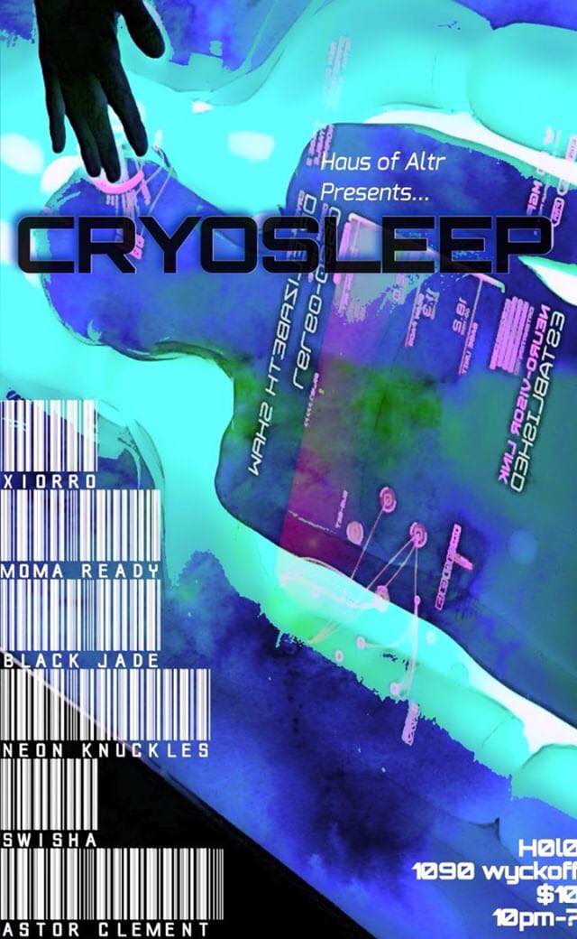 The event name, Cryosleep, a process where astronauts in sci-fi movies are put into a state of suspended animation via a chamber or freezing, is reminiscent of the music’s black roots in futurism, turning the night into somewhat of a techno history lesson. What’s more, the event was a throwback to underground nightlife with no event page on Facebook and no pre-sales on Resident Advisor. Just one flyer:
