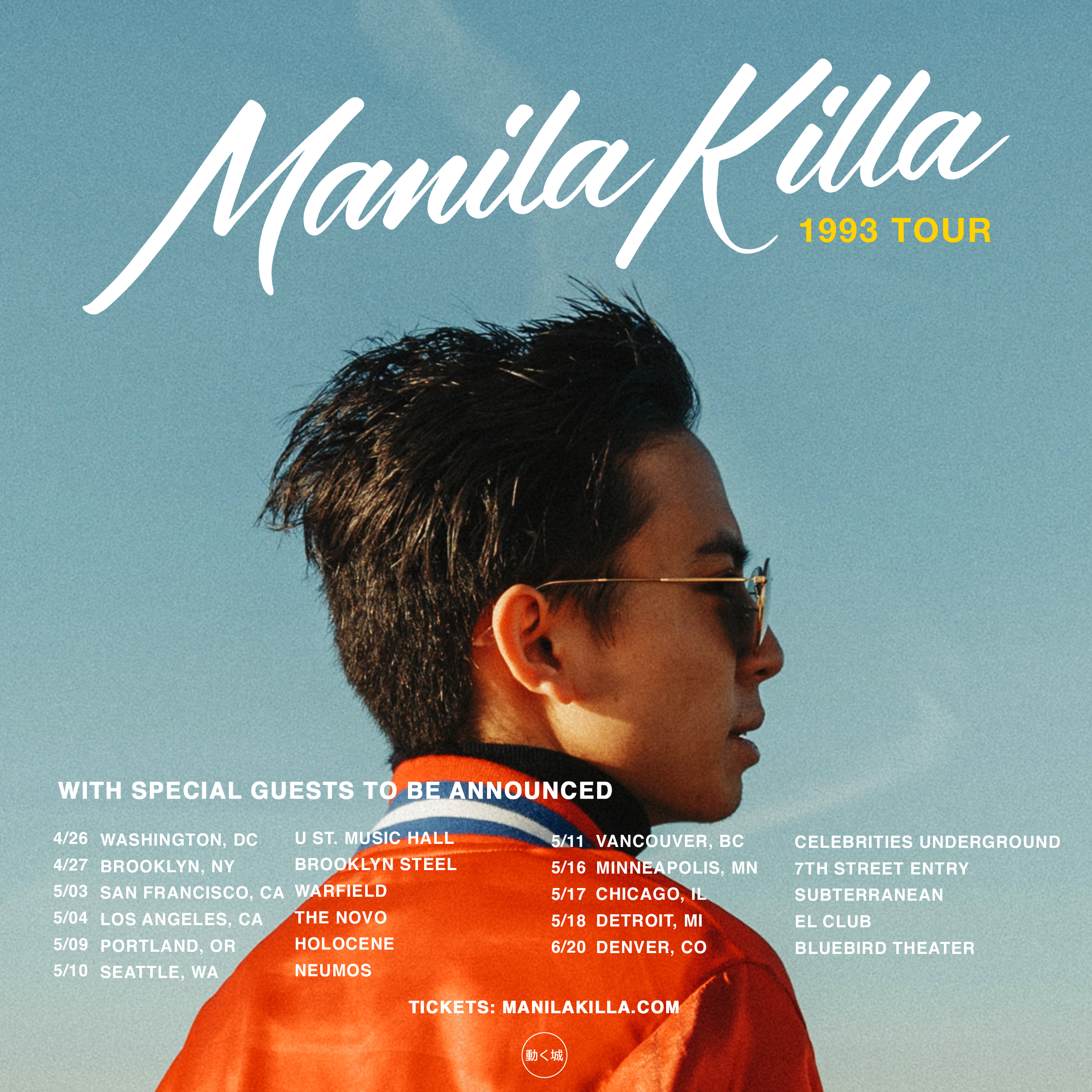 If Manila Killa’s New Year’s resolutions were to keep churning out music and ride a wave of productivity, he’s doing a good job. Earlier this week, he teased his first headlining 1993 Tour, with tickets going on sale today, January 11th. The announcement also coincides with the day his final song releases before the full 1993 EP comes out next month.
