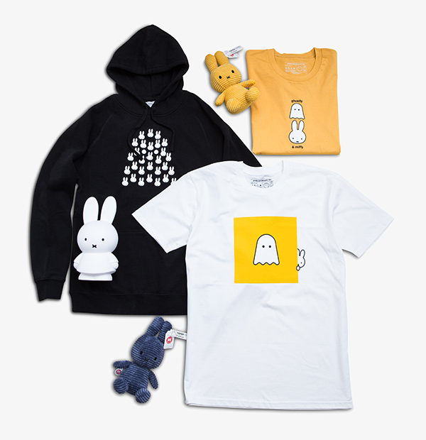 Today, leading electronic imprint Ghostly International has announced an exclusive capsule collection with famed Dutch cartoon Miffy, in celebration of 65 years of Miffy, and 20 of Ghostly. The subject of more than 30 children’s books as well as two television series and a film, Miffy is a testament to the magnetic and universal powers of simplicity, sincerity, and playfulness.