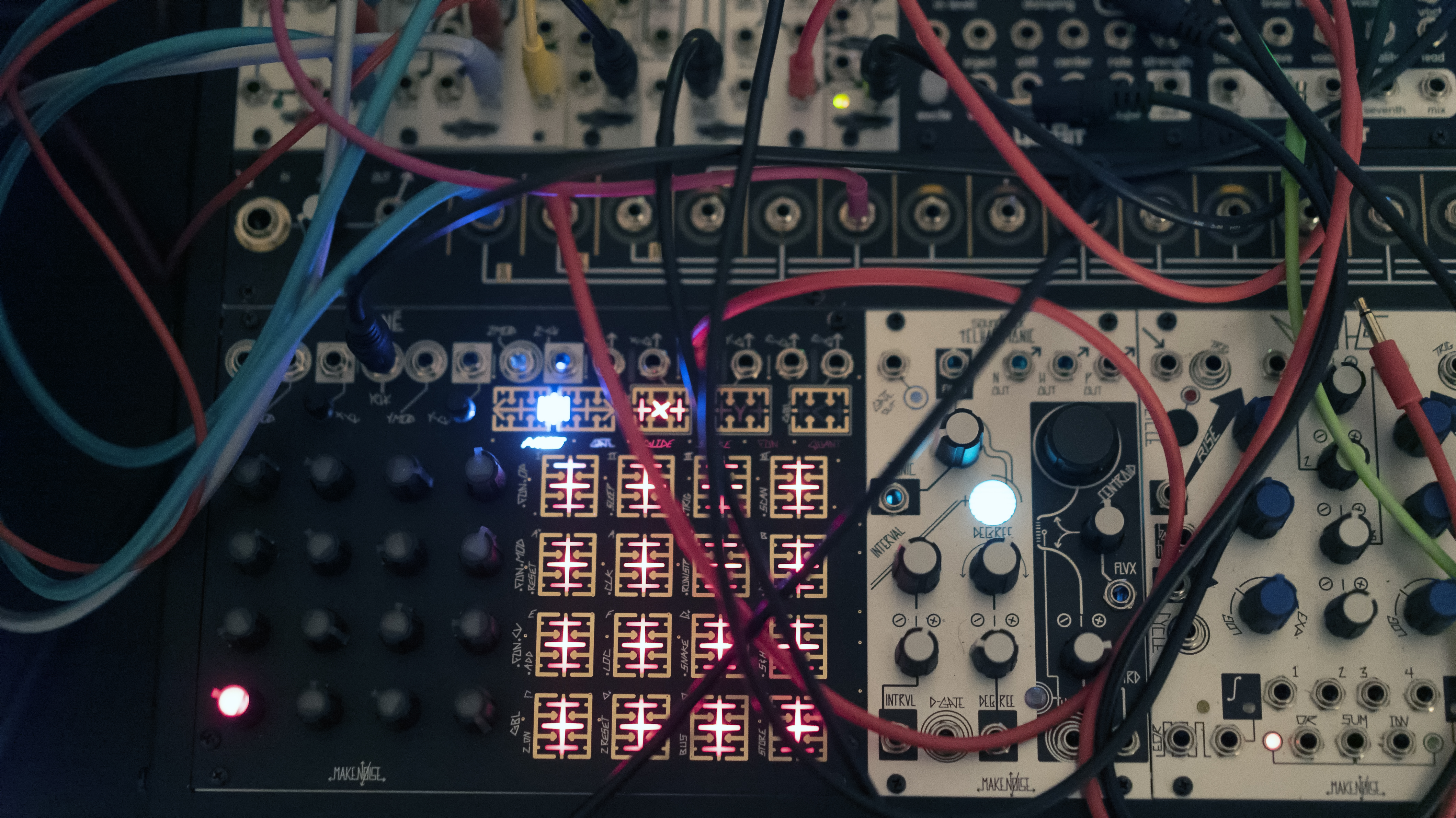 I really have an organic click with these modules and they allow me to really use them as performance instruments. I programmed the synth riffs into the Rene 2 sequencer and I recorded the track in one take.