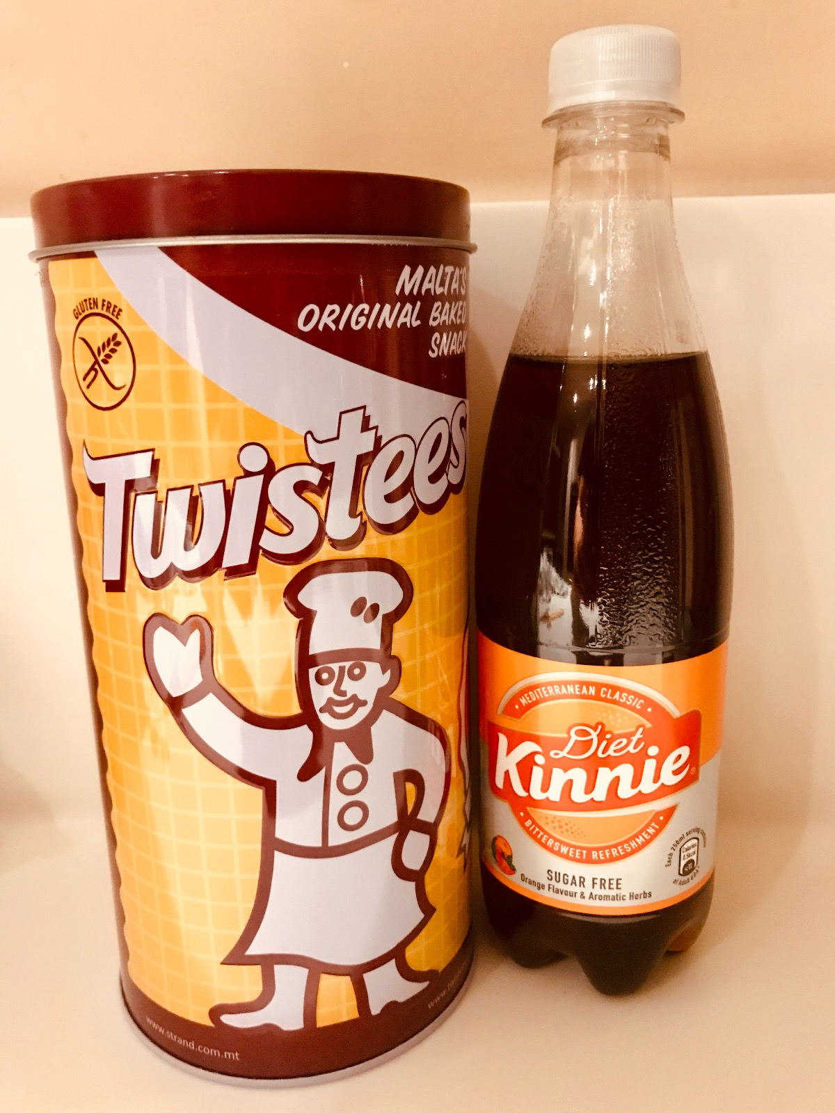 We have an amazing local beer called “CISK” and also very good wine called “ANTONIN” from our sister Island Gozo. Then if you like soft drinks we have “Kinnie” that has an orangey flavor & also our number one packet of chips called “Twistees,” the best one being the cheese flavor.
