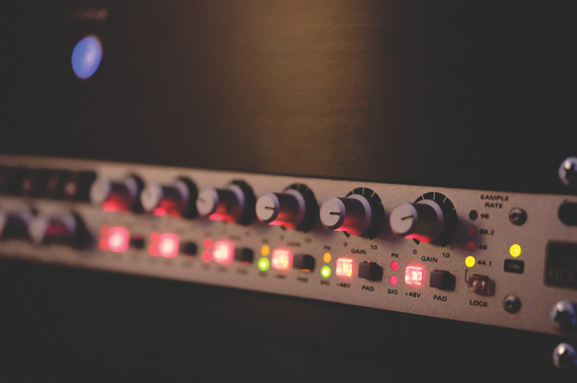 All mics are routed through an Audient ASP 800 into an Audient ID22 soundcard. The studio machine is a custom-built PC by PC Audio Labs.