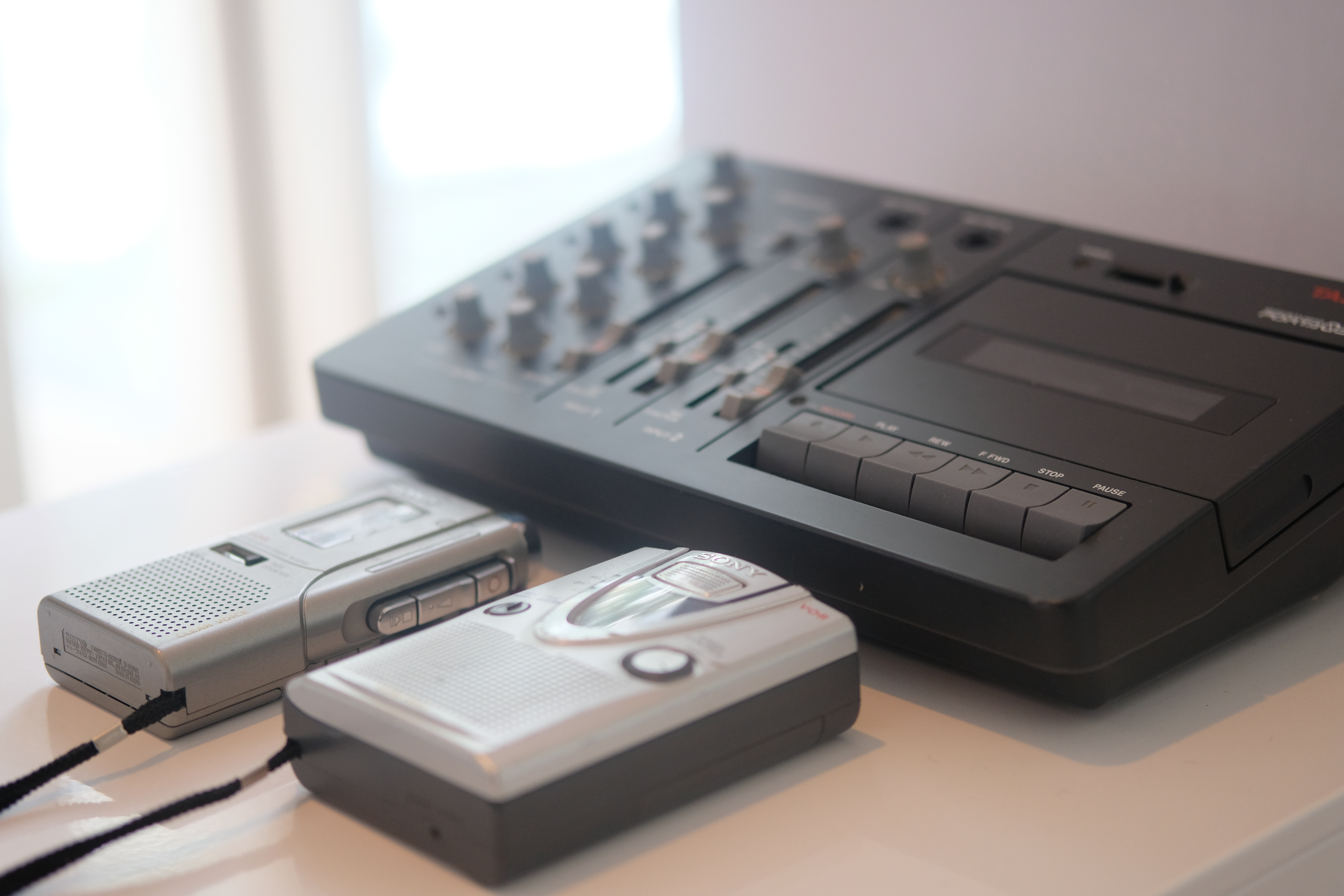 We have a Tascam Porta03 Mark II for cassette mixdowns, and a Sony TCM400DV and Microcassette recorder for further tape manipulation of individual elements. We’re using Amphions for monitoring and DT 770’s for headphones.