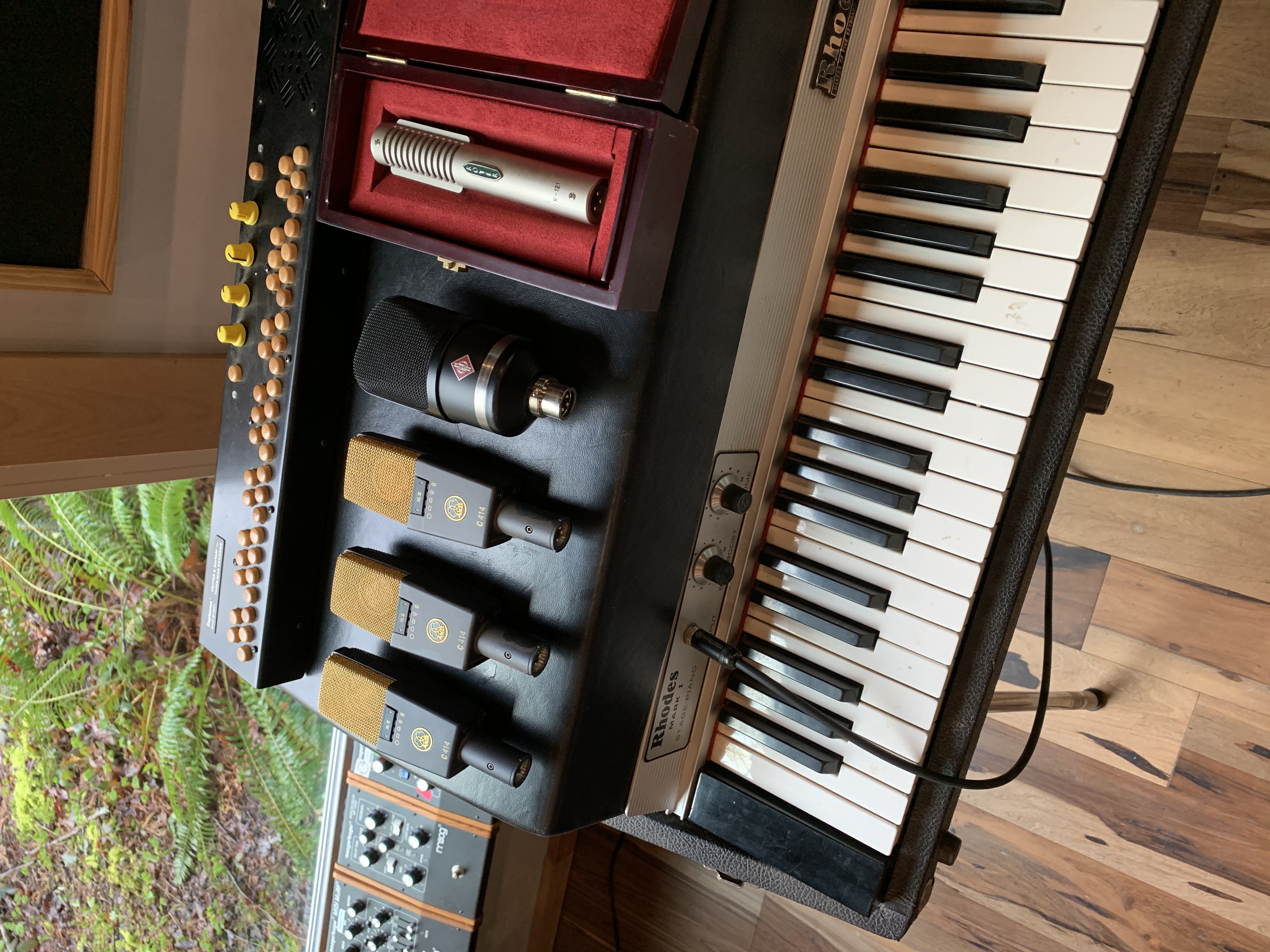 A staple in my studio since 2012. Used mostly for deep bass tones. Also pictured, the Rhodes Eighty-Eight Mark II.