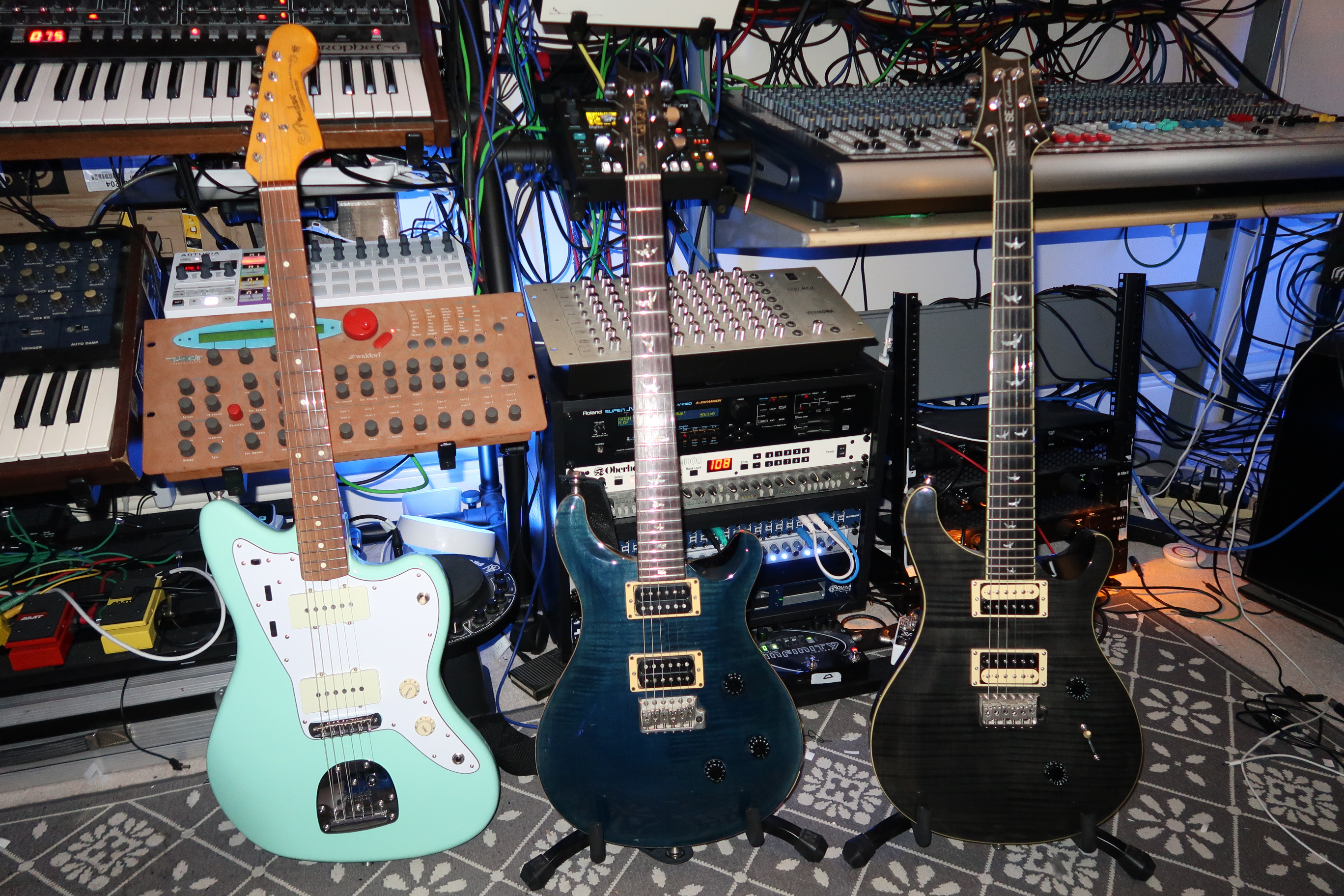 I use the Kemper for all the guitar parts on the release. The PRS Custom 24 has been my main guitar for the last 20+ years. It was used for most of the guitar parts on Embers, including the lead melodies on “Floods” and the harmonics on “Unity” and “Solace in Tomorrow.” The Fender Jazzmaster and PRS SE24 were used on “Floods” for the add9 riffs and doubling the Custom 24 parts.