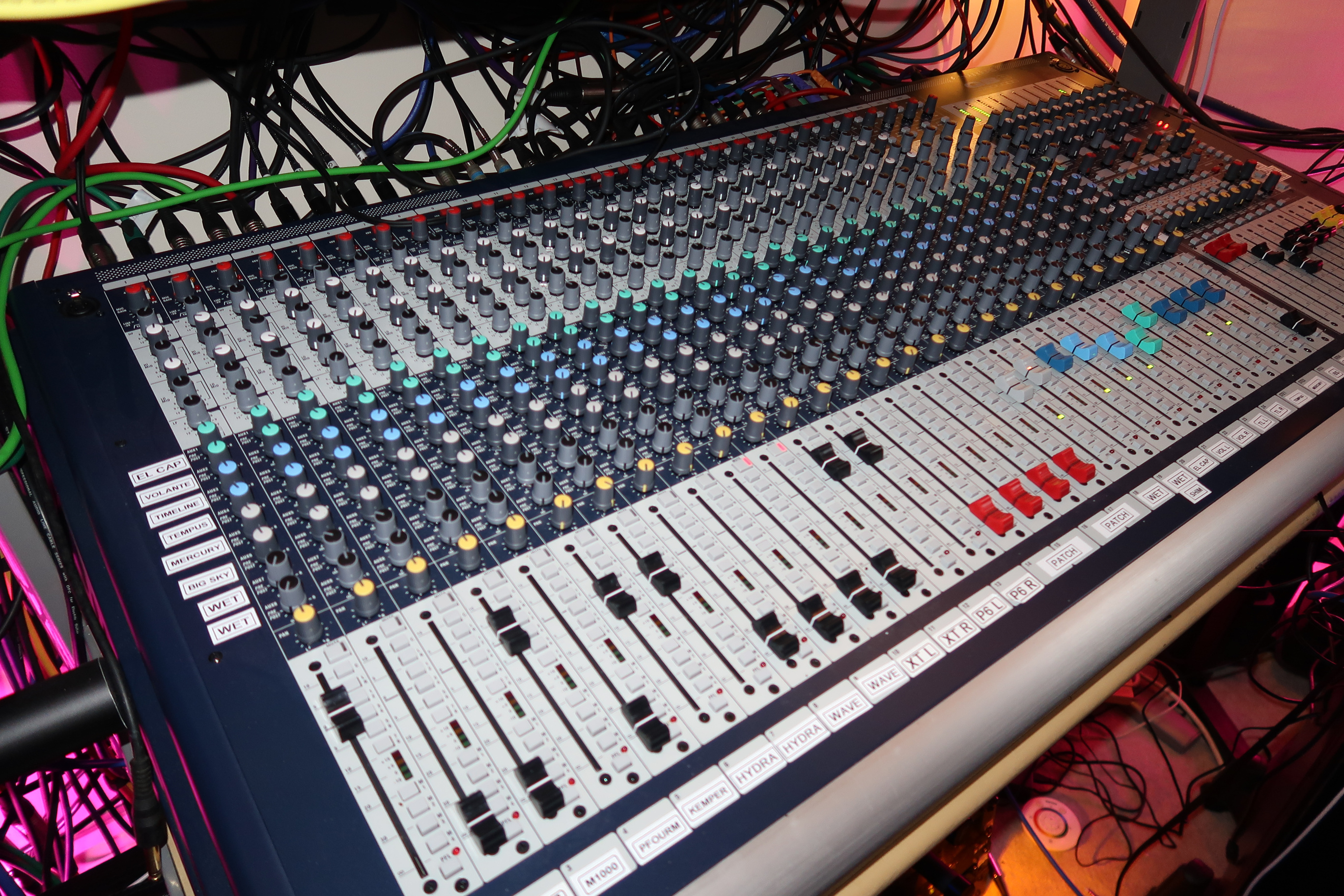 I ran all my synths and guitars via the Soundcraft mixer. It’s mainly used as a way to use a lot of FX sends and have the pedals coming back into the mixer so I can sculpt the sound. My dry sounds always track through the Silver Bullet, and I have my reverbs and delays on 2 other busses going straight into my RME UFX soundcard. I like being able to control the wet/dry mix in Cubase after recording, and if I need to do any edits on the dry sound I can just send it back out to the mixer to record the reverbs and delays again.