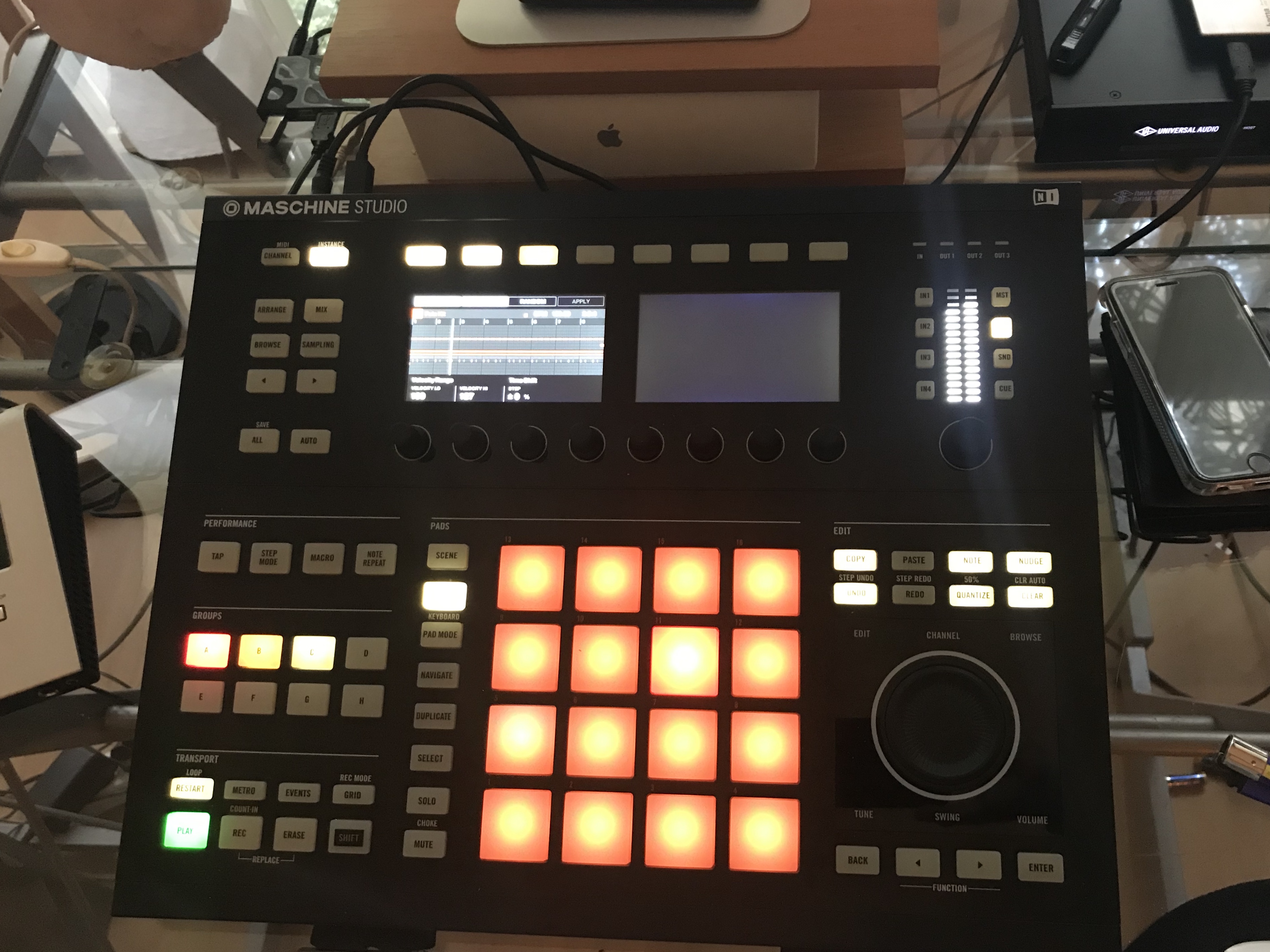 The Drum set is a taped 808 samples kit that I used in the Maschine. I really like to use this gear when it comes to jammin’ because it gives me the old MPC feeling. I love to feel the beat and experiment freely. It’s way better than sampling a percussion loop by only using a mouse.