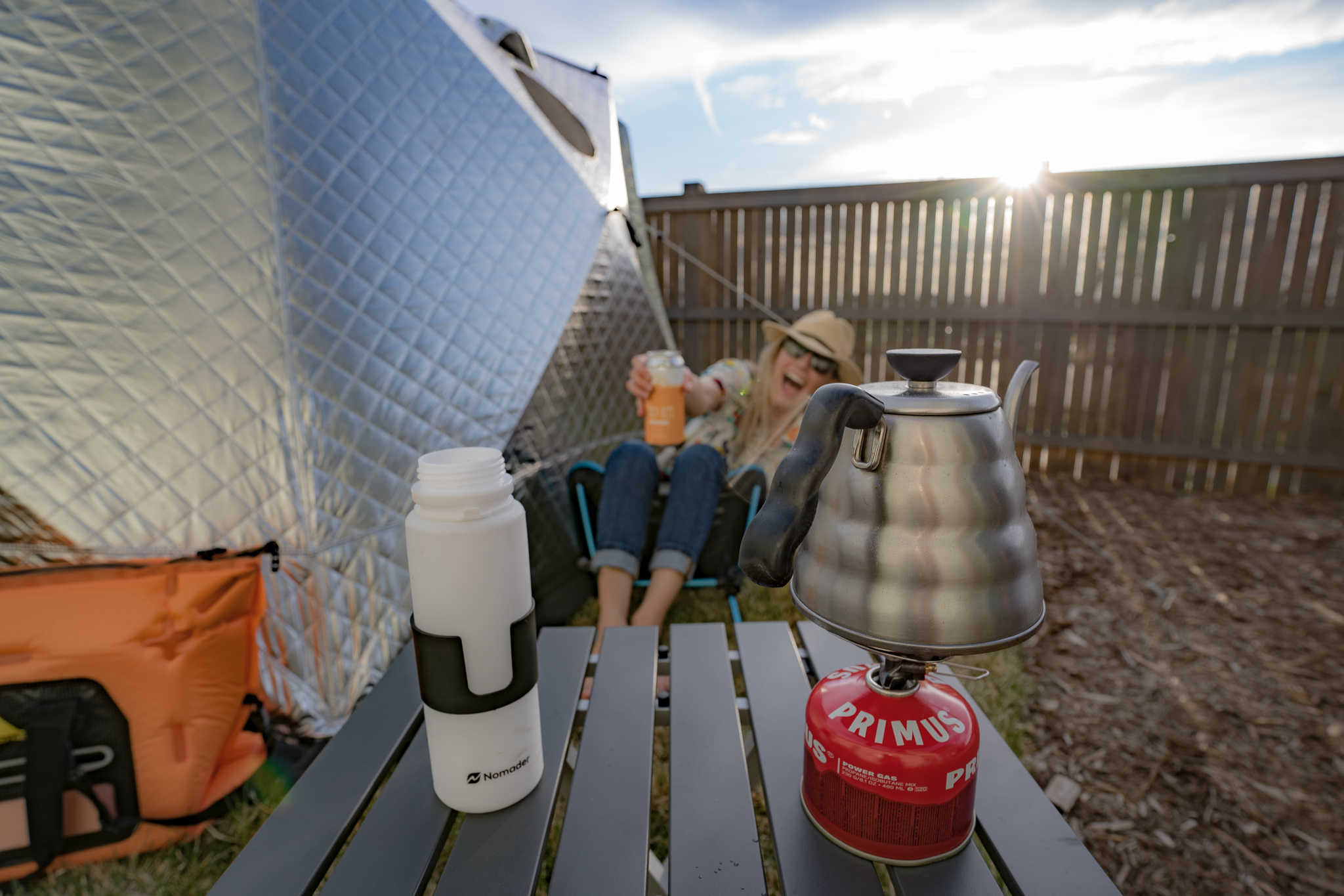 – Dust off your camping gear. If you have the space pull out the camping table, cooler, chairs, etc. It makes it feel more legit, and you can get your gear cleaned up for that next trip????