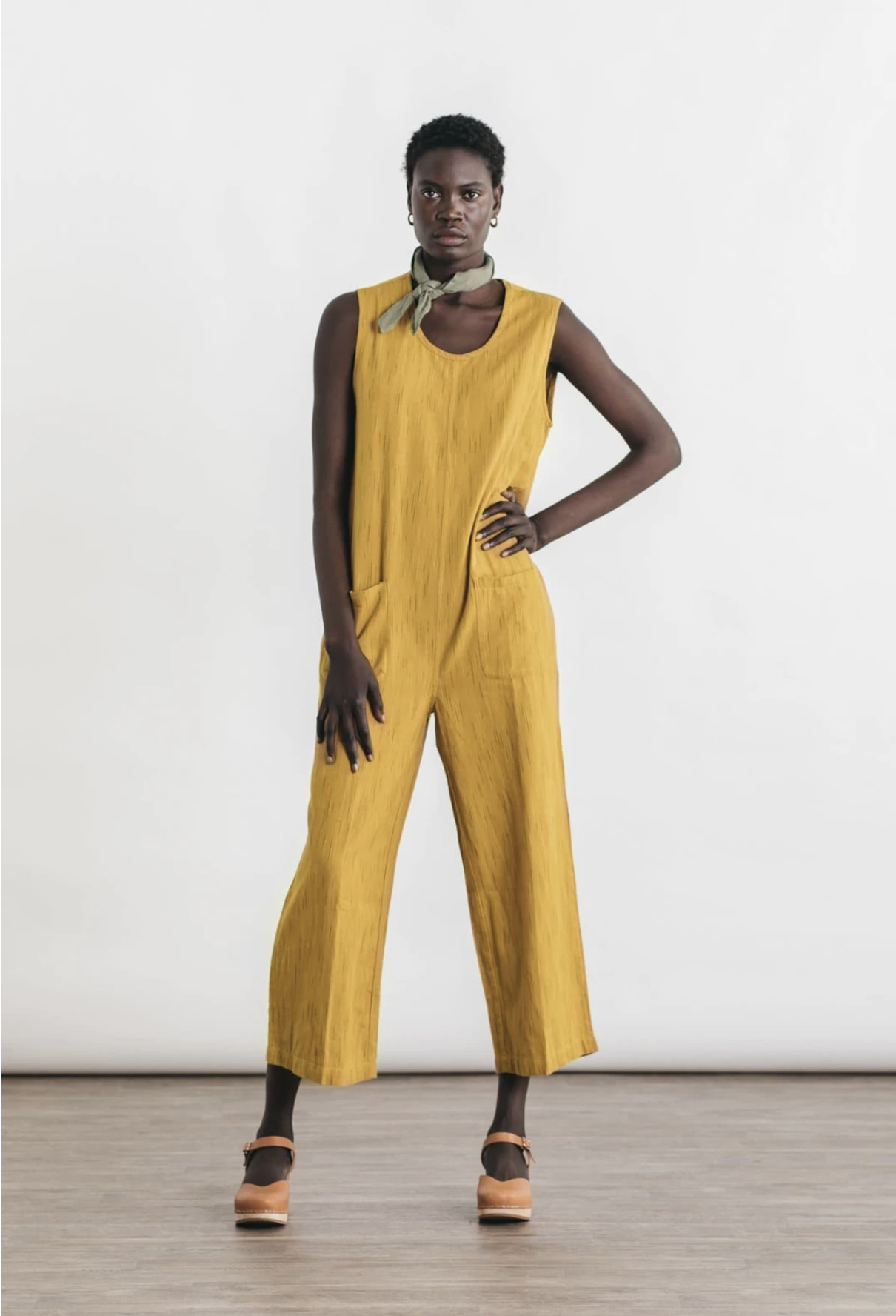 The Kay is a wide-leg jumpsuit with a flattering scoop neck and a relaxed fit. It’s crafted from a multicolor organic cotton spacedye that breathes easily, drapes nicely and only gets softer over time. Front patch pockets add a utilitarian finish. Size up for a roomy, slouchy look.