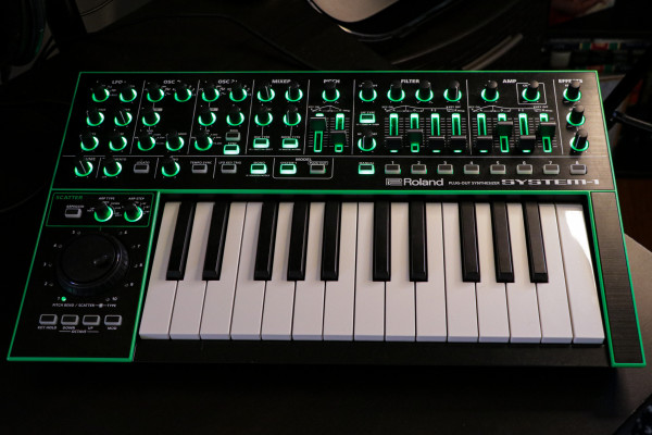 I picked up Roland’s System-1 in 2016. Over time, this synth has become an essential part of my setup. If I could only have one keyboard it would be the System-1. The only setback is that the keys are not velocity sensitive. However, this often comes in handy when I’m punching in track elements that sound best to me with a consistent velocity i.e. drums and basslines. The System-1 is the perfect size controller to have right next to me on the desk and the hands-on aspect has taught me a large part of what I know about programming sounds. It’s a great synth in it’s own right but I’m mostly using it to control Roland’s SH2, SH101 and PROMARS software synths. The System-1 seamlessly maps and controls every knob on these synths and I’ve used it to program the majority of the sounds on the album. It’s perfect for basslines, leads and arpeggios.