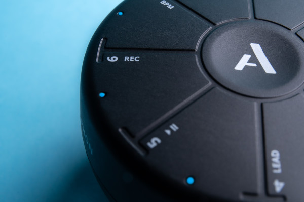 When one first sees the Orba, you can’t help but become intrigued by its small, curious interface. Resembling a Bluetooth speaker, the Orba fits in the palm of your hand and, through its eight key interface, allows you to play one of four sounds, Drum, Bass, Chords, or Lead. The round center button in the middle acts as a shift key to change instruments and functions, like Play/Pause, Record, BPM, and Octave. Along with the key functionality, the Orba reacts to various movements to change the sound, and you can also tap it on the side to get a clap in the Drum mode.