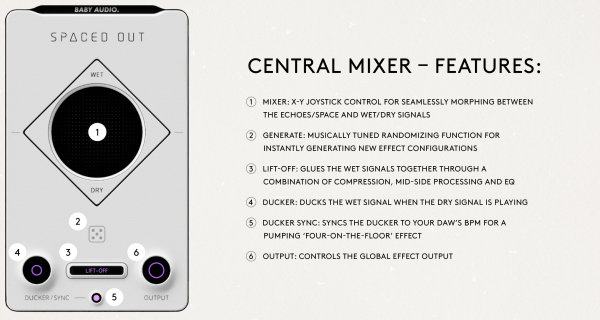 A while back we did reviews on Baby Audio’s Super VHS and Comeback Kid delay, and we were massive fans. The biggest winner for me personally was just how simple and intuitive the plugins are. As much as I love getting under the hood and noodling away, most times I prefer to just stick a plugin on and have it do something cool with as few clicks as possible. Spaced Out does just that.