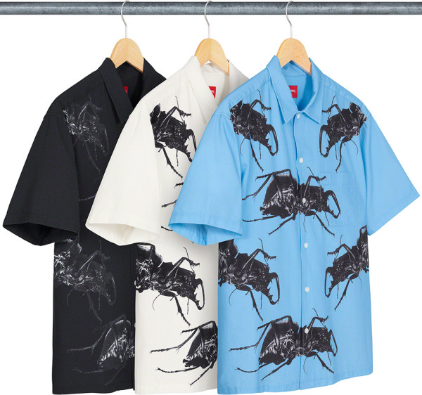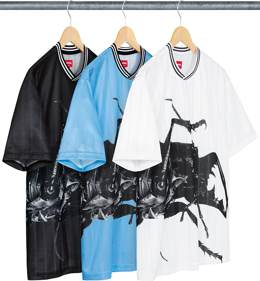 Supreme is releasing new clothing in honor of Massive Attack seminal album Mezzanine. The clothing will be adorned with the beetle fro the Mezzanine cover art. Among the things you can purchase will be a soccer jersey, shorts and a short-sleeve button down, because it is summer. They come in light blue, white and black.
