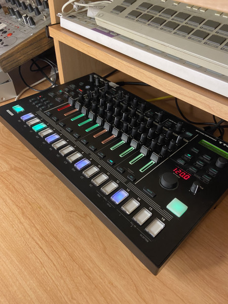 For an all around drum machine that goes a long way, its hard to beat the Roland TR8S, especially for the cost. 808, 909, 707, 606. While this machine comes with plenty more to work with, I am all for the classic drum sounds so its no surprise that those are the kits I used for this EP. Plus when playing live, its important to me to create movement in the drums so being able to effect the decay and have it sound so natural is huge for me.
