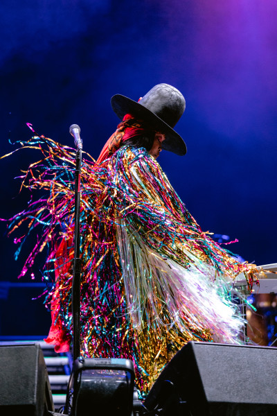 Erykah Badu. Some know her as the queen of neo-soul and others as an actress. She showed off her incredible pipes during her set on Sunday at the Miller Lite stage. Sporting her familiarly large hat, colorful fringe, and slightly late in true soul diva fashion, she was able to relax and sway the crowd after a long day of festivities. Performing at 7:30 pm, things were darkening around Zilker Park setting the mood for her set with Soul Train playing on repeat behind her. Throwbacks like “On & On” and “Love of My Life (An Ode to Hip Hop)” got the OG Badu fans reminiscing and attendees passing by stopping to hear her sing.