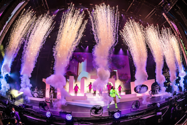 Saturday afternoon started off with fun sets from indie pop band ARIZONA, followed by indie pop star Melanie Martinez. Throughout her career, Martinez has become known for her playful persona and bubble gum pop meets experimental indie leaning music. Martinez was supported by amazing dancers performing fun choreography, while colorful visuals of images such as teddy bears were projected in the background. A multi-dimensional musician, at points during the show Martinez even played the harp.