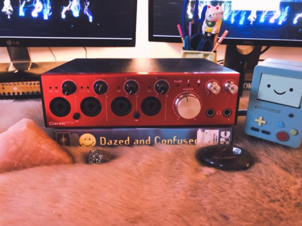 This was the audio interface I was using at the time of the full moon flex live stream. I was still on a mac then, discord didnt love focusrite and I used it a lot for our sessions. Now using UAD-x4 gifted for my 40th from “Pockets” in my server, so much love for my community! BMO cameo.
