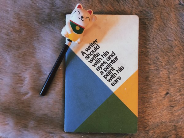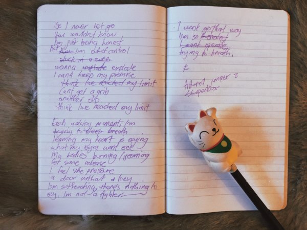 This was also the mic I used on stream and for recording all my sessions. It tends to reveal the perfect imperfections in my voice, it’s an amazing mic and brings out all the textured breathy ASMR vibes for maximum presence. Also really great for recording guitar and vocal live sessions. My Cobain journal is always on my desk for instant inspiration and nostalgia.
