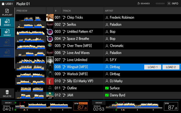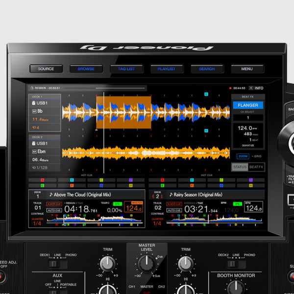 The 10.1-inch touch screen on the XDJ-RX3 delivers a higher resolution and frame rate than the previous model and features a brand-new interface for quick music browsing and easy effects control. The new all-in-one system inherits the flagship CDJ-3000’s browse section for intuitive playlist navigation. With the new Playlist Bank feature, artists can rapidly access their four favorite playlists at a single touch, while Touch Preview enables artists to listen to any part of a track without loading it to the deck. Artists can switch between viewing the pad status or Beat FX and the X-Pad with one tap on the screen.