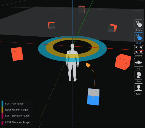 Using L-ISA Controller, you place your objects within 96 channels of audio in your virtual surround space. Utilizing this will allow you to do most of the work from the comfort of your studio, before ever stepping on stage.