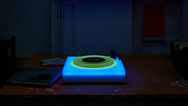 Brian Eno has teamed up with London’s Paul Stopler Gallery to create a limited run of color changing LED turntables. There are only 50 being made, so this is a very limited run. The turntable glows various colors as music is played.