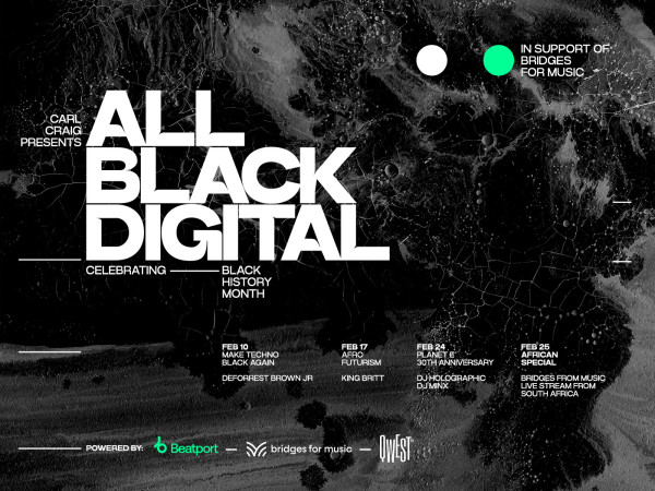 Carl Craig has announced a series of virtual conversations and performances in support of Bridges For Music called All Black Digital in celebration of Black History Month. The series is being done in partnership with Beatport and Qwest TV. Find the fundraiser for Bridges For Music here.