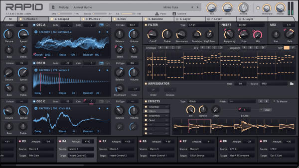 RAPID is a modern hybrid synthesizer that blends seamless workflow with accessible synthesis techniques. The unique layer engine that RAPID is built off of lets you mold and customize all aspects of your tracks, resulting in dynamic and fat patches, ready for production, performance or simply inspiration to start your next project.