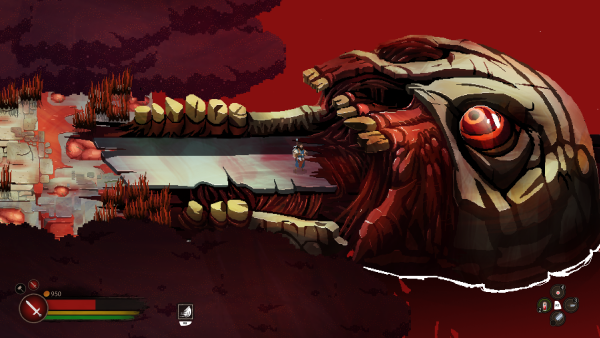 No Place For Bravery’s world takes cues from the Metroidvania genre and locks certain areas behind weapons or items that you won’t find until much later, forcing you to circle back if you want to see everything and upgrade Thorn to his fullest.