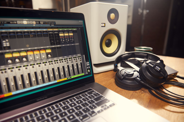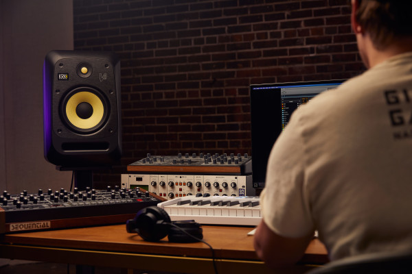 If you use a sub, try to size it reasonably. KRK offers four different subs in the lineup to choose the right one for your space. If you’re using something like a pair of ROKIT 5s, an S8.4 sub would be well-matched. That will give you enough bass reinforcement to hear what’s going on in the bottom, and it’s less likely to overwhelm the room. For a slightly larger room that maybe has seven- or eight-inch nearfield monitors, you can go with a bigger sub―like the KRK S10.4.