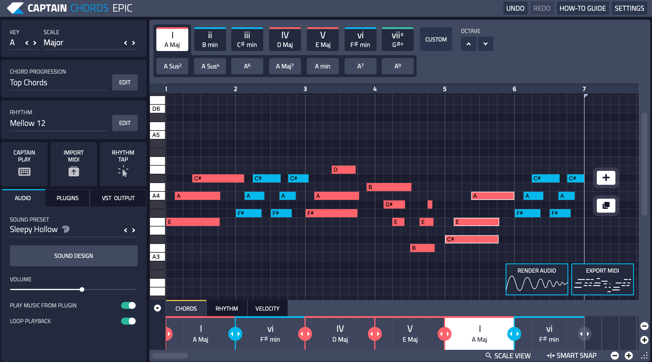 These chords create the framework of the song that the other plugins in the bundle, like Captain Deep, play off from.