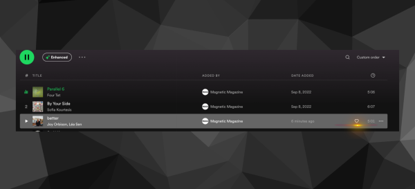 The final step is to tap that “Enhance” button one more time at the top of the playlist and Spotify will update the entire playlist and make it live for all your adoring fans to see all the hard work you’ve done curating this fresh batch of tunes.