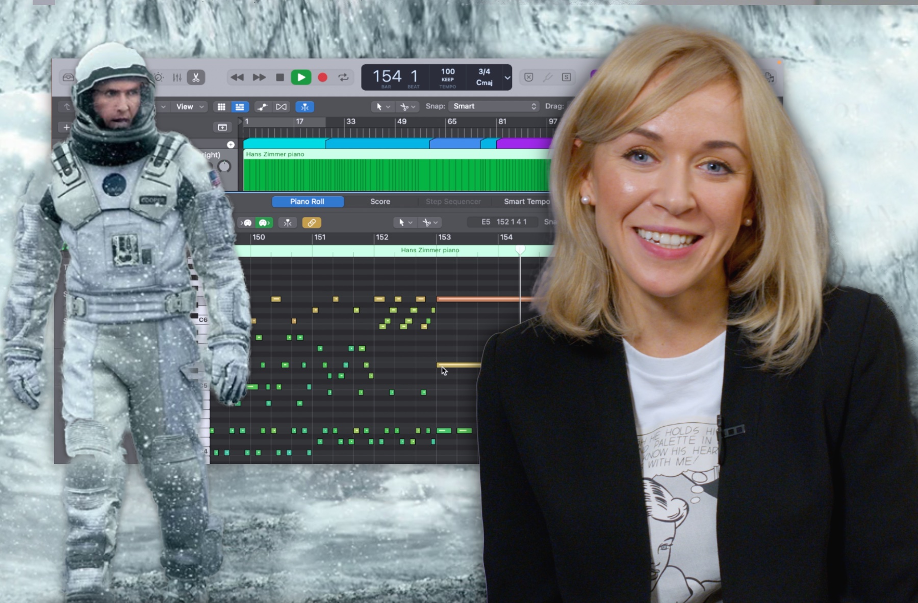 Elena talks through the piece’s key signature, A natural minor, and how Zimmer uses pedal point, in this case, the E note, to build out a background pulse throughout the song. Zimmer mimics the constant ticking of a clock with repeated notes and breaks out into more complex melodies in different octaves later on, to build out the track’s dynamics and add more intensity.