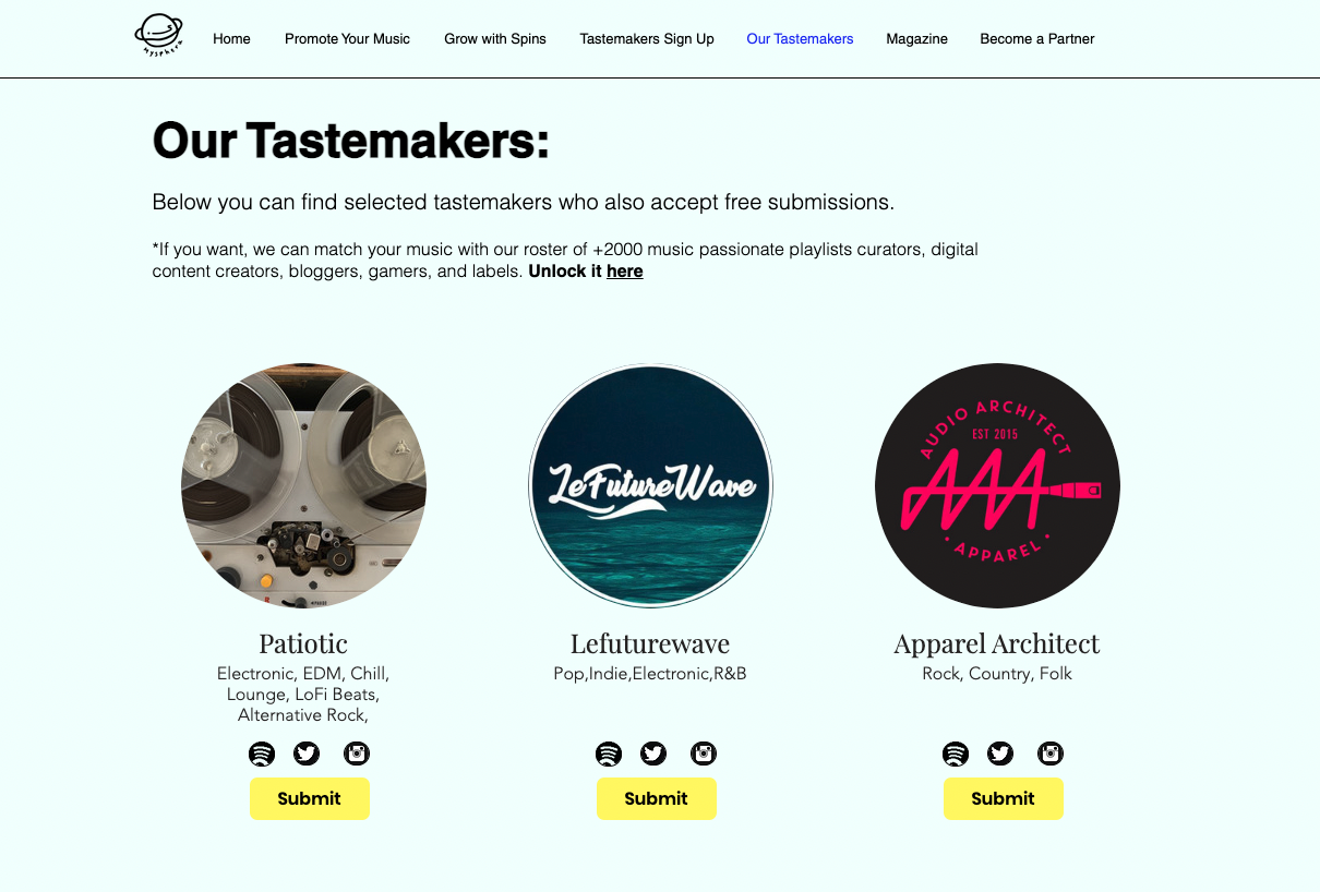 The website is a great resource for music fans looking to discover new music and keep up-to-date with the latest trends in the music world. Whether you’re a fan of pop, rock, electronic, or any other genre, you’re sure to find a playlist that fits your tastes on this website. But more importantly, they allow you to submit your music to a TONNN of their playlists. Just ensure they match the vibe so you don’t waste anyone’s time (yours included).