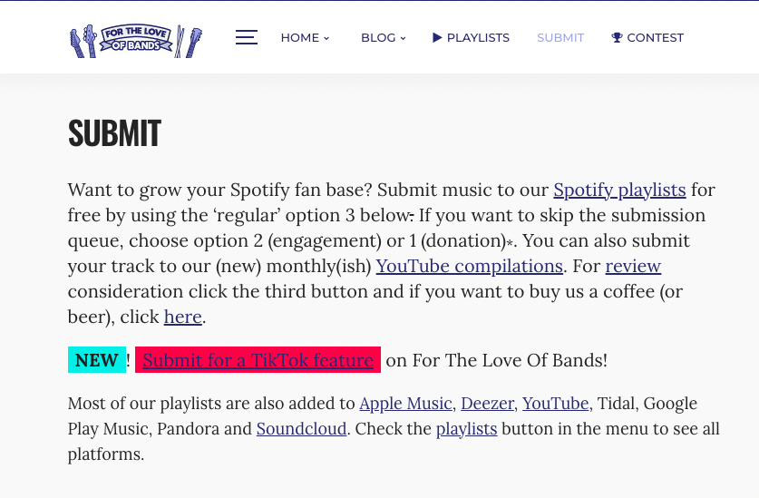 The submission form is easy to use and requires basic information about the artist or producer, such as their name, email address, and a brief description of their music. Once the submission is received, the For The Love of Bands team will review the music and consider it for inclusion in one of their playlists. This platform is an excellent way for musicians and producers to get their music in front of a new audience and increase their visibility in the music world.