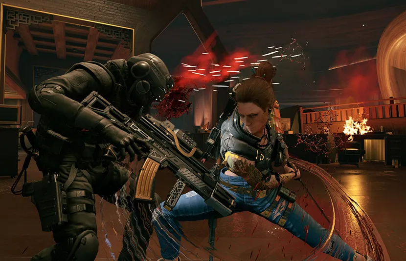 Wanted: Dead is fast, bloody, and challenging. Stone can slice enemies up with her katana, stagger them with her handgun, or engage in standard 3rd person cover shootouts with her custom rifle. You can dodge out of harm’s way, block melee attacks, or counter them with a well-timed parry. When all of this is working, the combat has a certain flow that I enjoyed quite a bit. Slicing off enemy limbs before pulling out your handgun for a perfectly timed stagger can feel really satisfying.