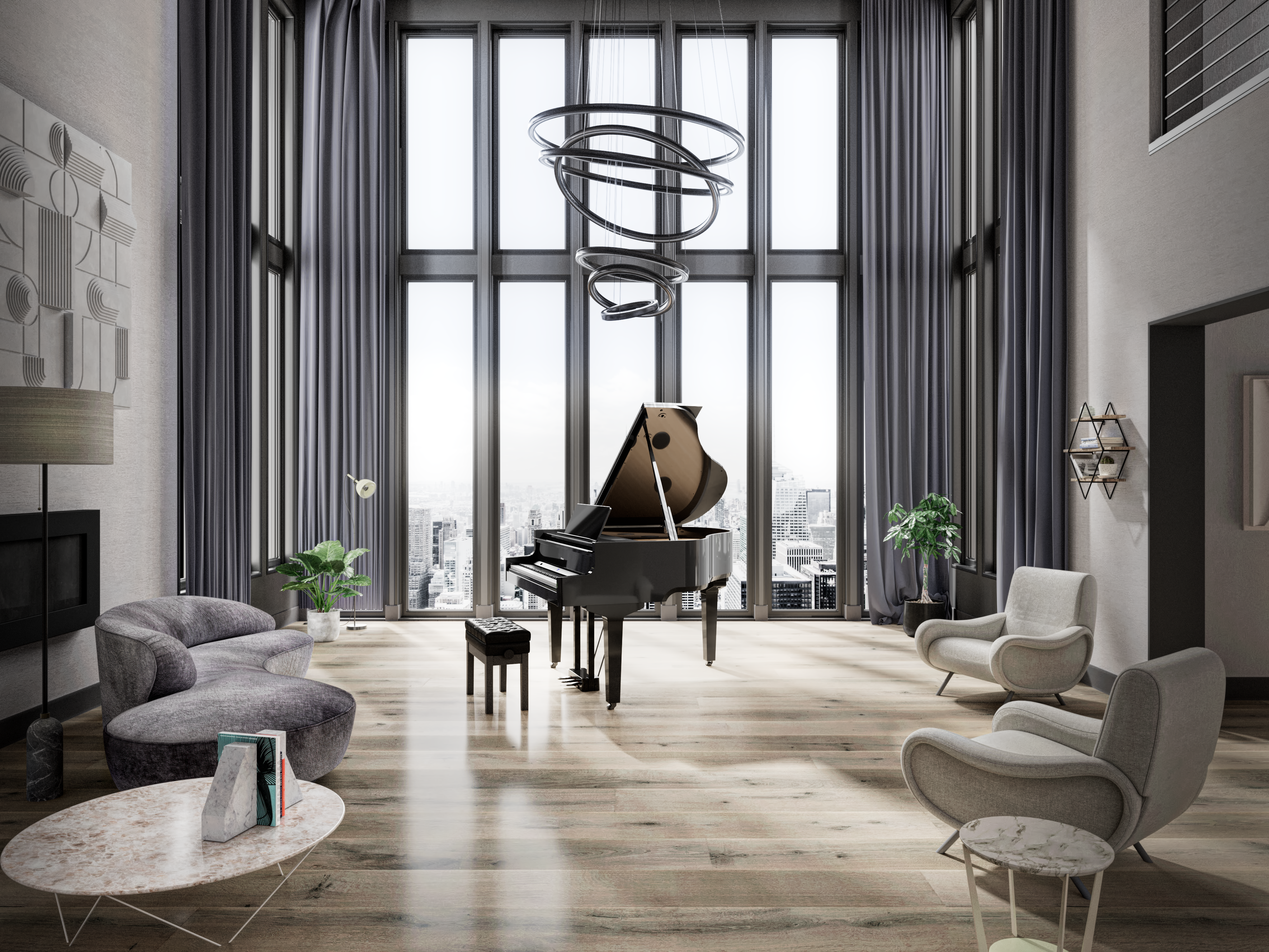 The GP-9 features the Piano Reality Concert projection sound system, where multi-channel amplification, premium audio circuitry, and advanced sonic processing combine for a full-surround piano experience. Carefully tuned elements deliver the same bold and immersive sound presentation as a concert grand in a performance hall. Notes naturally move across the sound field before the player, mirroring the physical string positions on an acoustic grand’s soundboard.