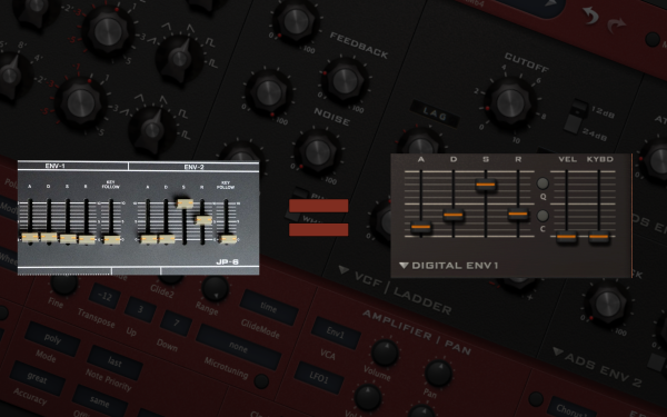 This envelope generator is modeled after the Roland Jupiter 6, a synth revered for its advanced envelope capabilities. The Jupiter 6 stood out for its digital control, offering short and versatile envelope shaping. The Digital module in Diva captures this flexibility with switchable quantization and curvature behavior, allowing for a wide range of envelope shapes.