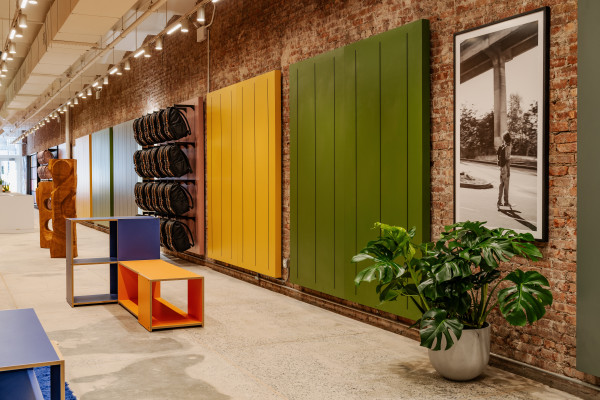 Herschel Supply’s in-house team meticulously curated interior designs. Steven Wilde, Herschel Supply’s Director of Photography, contributes art that adorns the space. There’s also a nostalgic touch with the original “Herschel” road sign from Herschel, Saskatchewan, reflecting the brand’s deep-rooted family history.