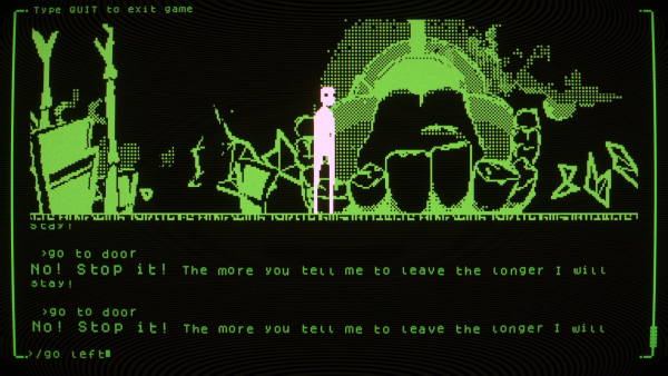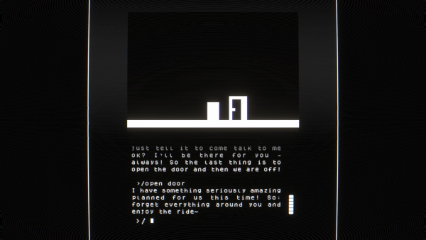 [I] Doesn’t Exist is, on its surface, a text-based adventure/puzzle-solving game. You are given a description of your environment and your text prompts dictate movement and actions. If you want to go left, you type left. If you want to open a door, you type “open door”. This is a concept that will be very familiar to any text-based adventure veterans. However, I’m new to the text-based adventure genre, so it was a new concept that I found very immersive. After about 30 minutes of text input, it began to feel like it was my own thoughts controlling the actions in the game. You can easily forget you’re typing and it feels like the game can just read your subvocalized thoughts. It’s eerie to say the least. Especially given the dark existential themes explored in the game.