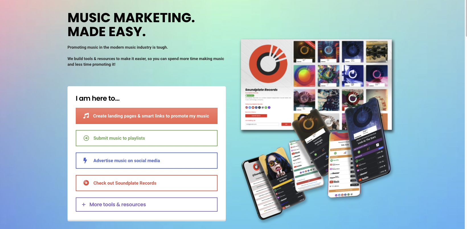 SoundPlate provides chances for playlist submissions, music distribution, networking-building opportunities, event listings, promotional tools, and instructional content. They operate as a separate label as well.