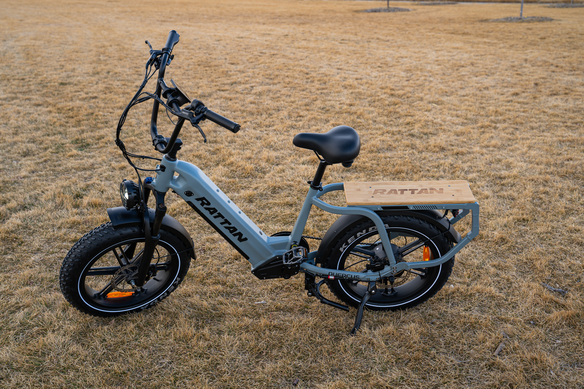 For a direct-to-consumer bike, the Quercus is built well overall, and packaged securely and well-protected. We’ve found that most bikes that come in at a better price point will sacrifice somewhere, and here, it’s the components like the derailer. This bike is heavy, and one of the intelligent things that Rattan has done is add two options for a kickstand. One on the bottom pushes the bike up from the middle, and a traditional side-mounted one with a height adjustment for quick parking on solid ground. Another thing many riders will like with a bike this heavy is that a step-through design makes it easy to mount and dismount, which is essential for smaller riders who would have trouble with crossbars.