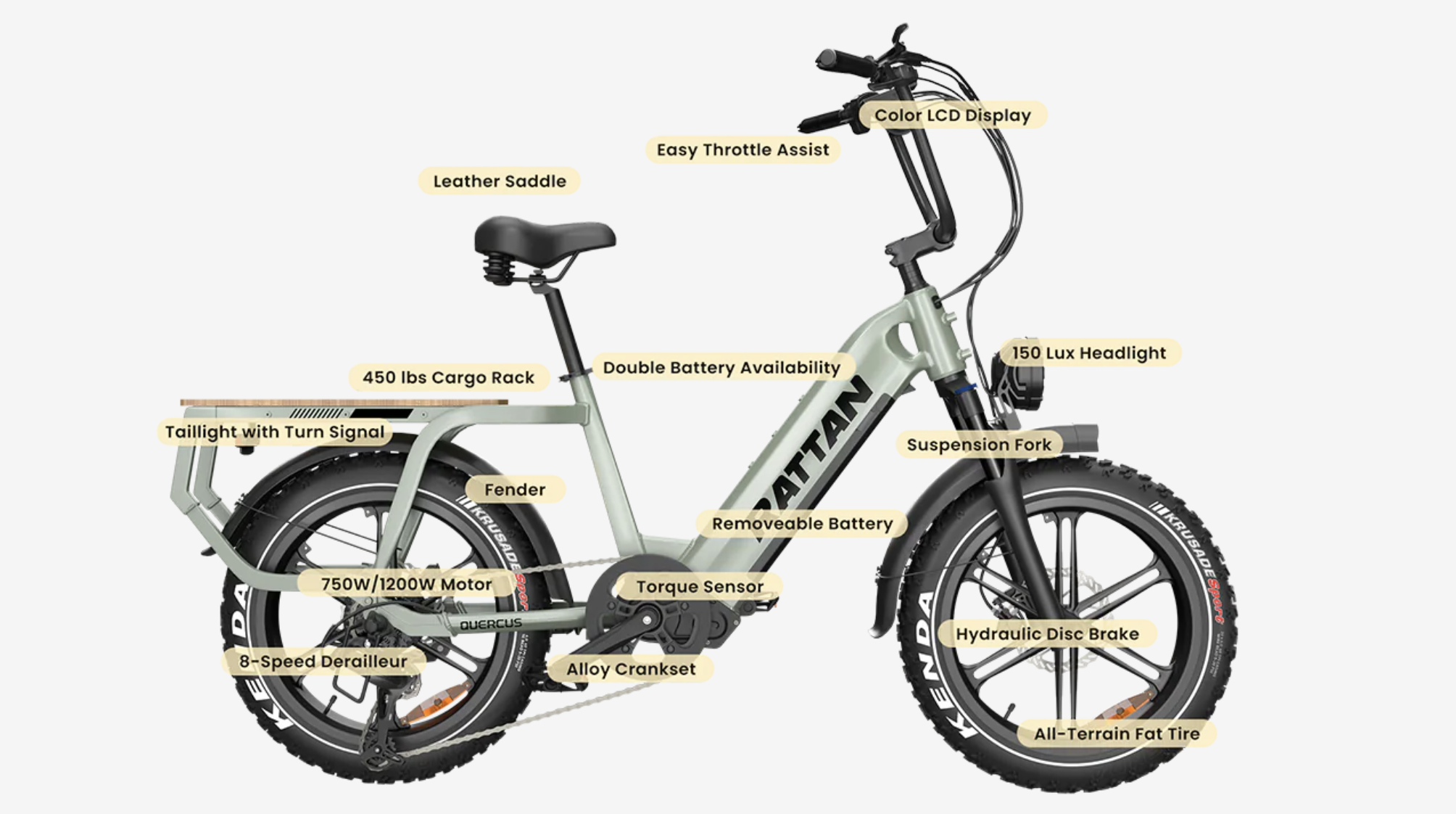 One of the big selling points of this model from Rattan is the cargo capabilities and heavy-duty payload. The bike has a rear mount that can be used in various ways to carry all sorts of stuff, from groceries to pets to food deliveries and even coolers. We don’t see anyone putting the maximum weight on this thing, which is 450 lbs, but it’s nice to know you can carry heavy loads.