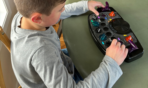 Suppose most of the riffs it generated were more musical and easy to listen to. In that case, I think my mom, when she comes to babysit, would be much more apt to let him play with the toy, but she isn’t a fan of its unmusicality (even if we tell her how the headphone pairings work).