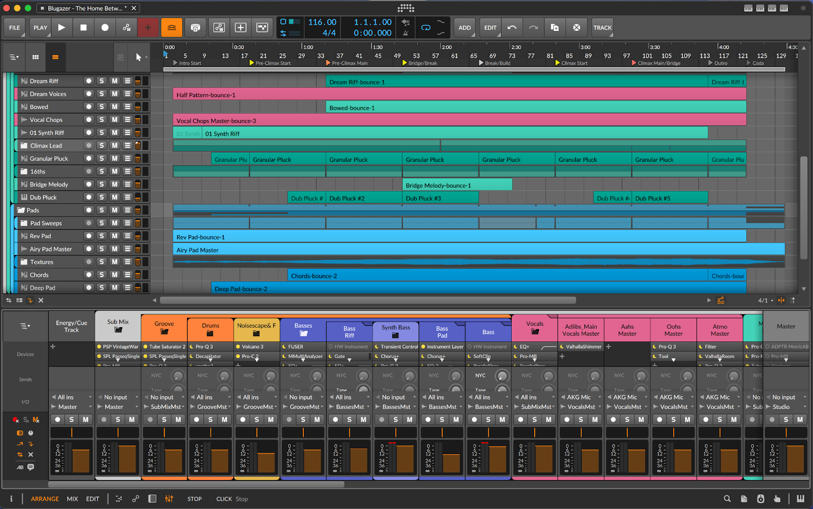This layering is very common in my music; I adore synthesizers and the level of depth they offer. Equally, the sound of organic instruments, such as the piano, resonate with me emotionally – so why only use one? The trick here is to be intentional with layering and have each layer complement each other to form a unified sound. Additionally, ensuring frequencies do not clash between layers will make mixing a layered sound much easier.