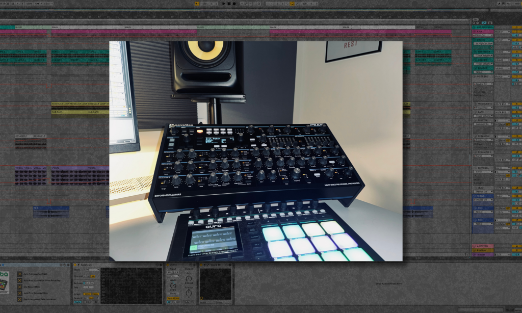 I use a Nectar Aura for drums, a hardware drum pad controller with a handy plugin for Ableton, making beatmaking super intuitive. The pads are decent for a £250 gizmo, and the knocks are useful too for automating soft synth parameters. I then used a transition sample for the FX – not gonna pretend this was a really intricate part of the production process, it just worked!